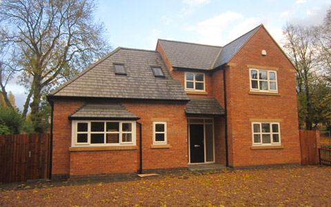 On this project we worked with a local developer who had purchased an awkward corner site in the centre of Scraptoft surrounded by trees. We designed a large 4 bedroom detached house with a double garage that works beautifully with the trees and the site constraints and it sold off plan.